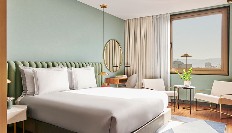 El hotel ofrece 465 habitaciones meticulosamente seleccionadas, incluidas 49 suites exclusivas y un lujoso ático. El Art Déco ha inspirado el diseño de las habitaciones, repletas de las últimas comodidades, como productos cosméticos de Natura Bissé.