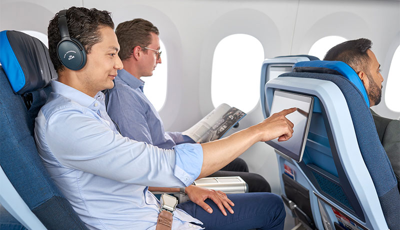 Además, los pasajeros disponen de una mayor flexibilidad con el equipaje (2 maletas de 23 kg), amenity kit, auriculares de cancelación de ruido, puertos de recarga y privilegios de SkyPriority en tierra, incluyendo facturación y embarque preferentes. Por último, el menú específico de esta clase dispone de 3 opciones (2 calientes y 1 frío).