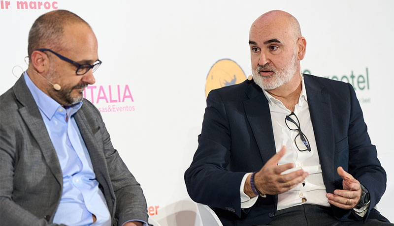 A continuación, José Agustín Ramírez, Jefe Grandes Cuentas de la división de empresas de Viajes El Corte Inglés, y José Antonio Padilla, Director General de Empresas de IAG7 Viajes, protagonizaron la mesa redonda de TMC’s. Un debate moderado por Oriol Ribas, Director de Comunicación de IBTA, y que analizó temas como la concentración de TMC en el mercado español, así como las tendencias y los cambios en los modelos de relación entre cliente y agencia.