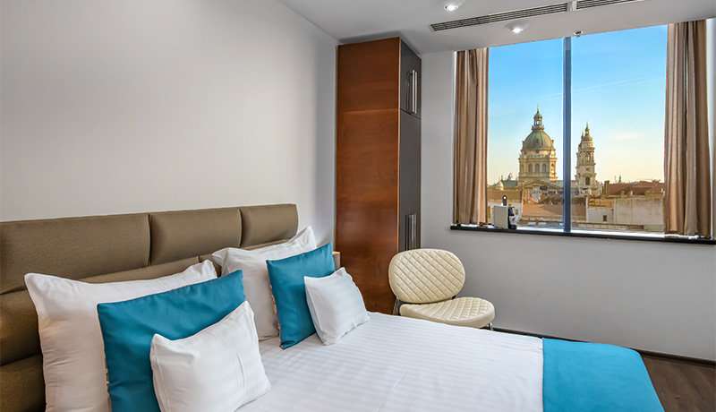 Ubicado en pleno centro de Budapest, el hotel cuenta con 152 habitaciones y una localización privilegiada a pocos metros del río Danubio, del emblemático Parlamento de Budapest y de la Basílica de San Esteban.