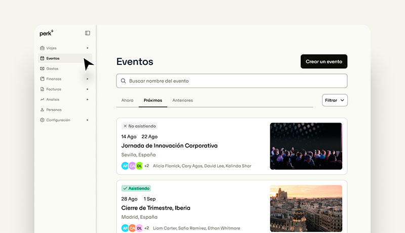 Todo ello se integra en una única plataforma, proporcionando a los organizadores mayor visibilidad, control y ahorro de tiempo, con el respaldo del equipo de expertos de Perk para los eventos más complejos.